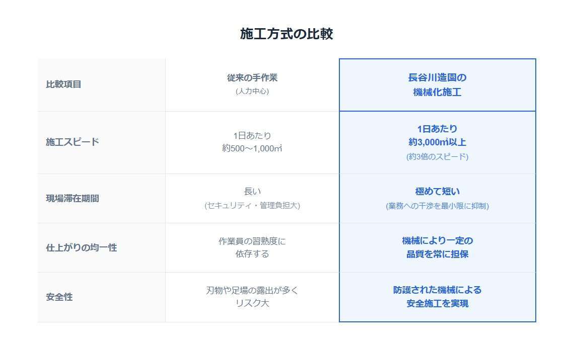 ■【徹底比較】従来の手作業 vs 最新の「機械化造園」