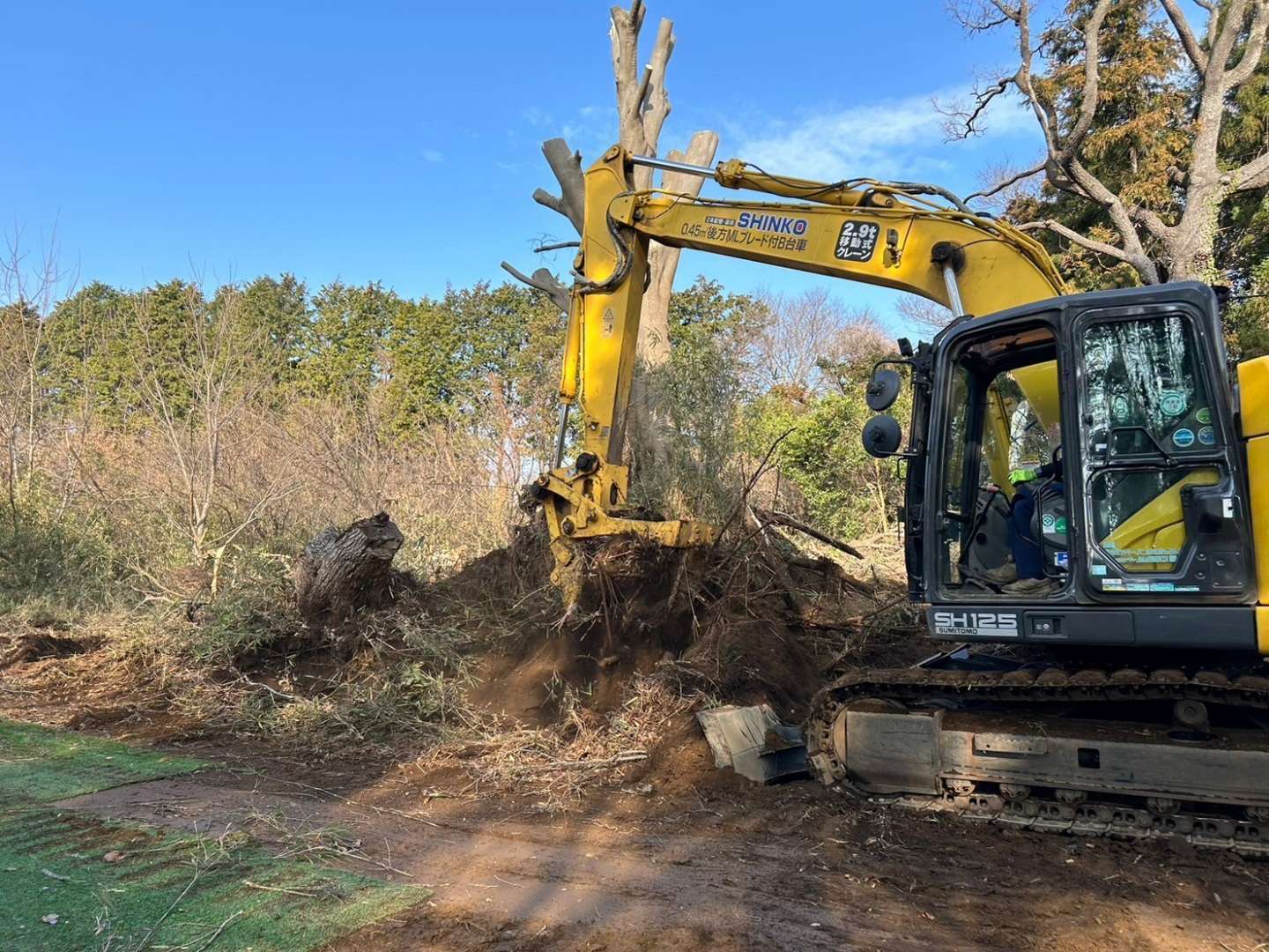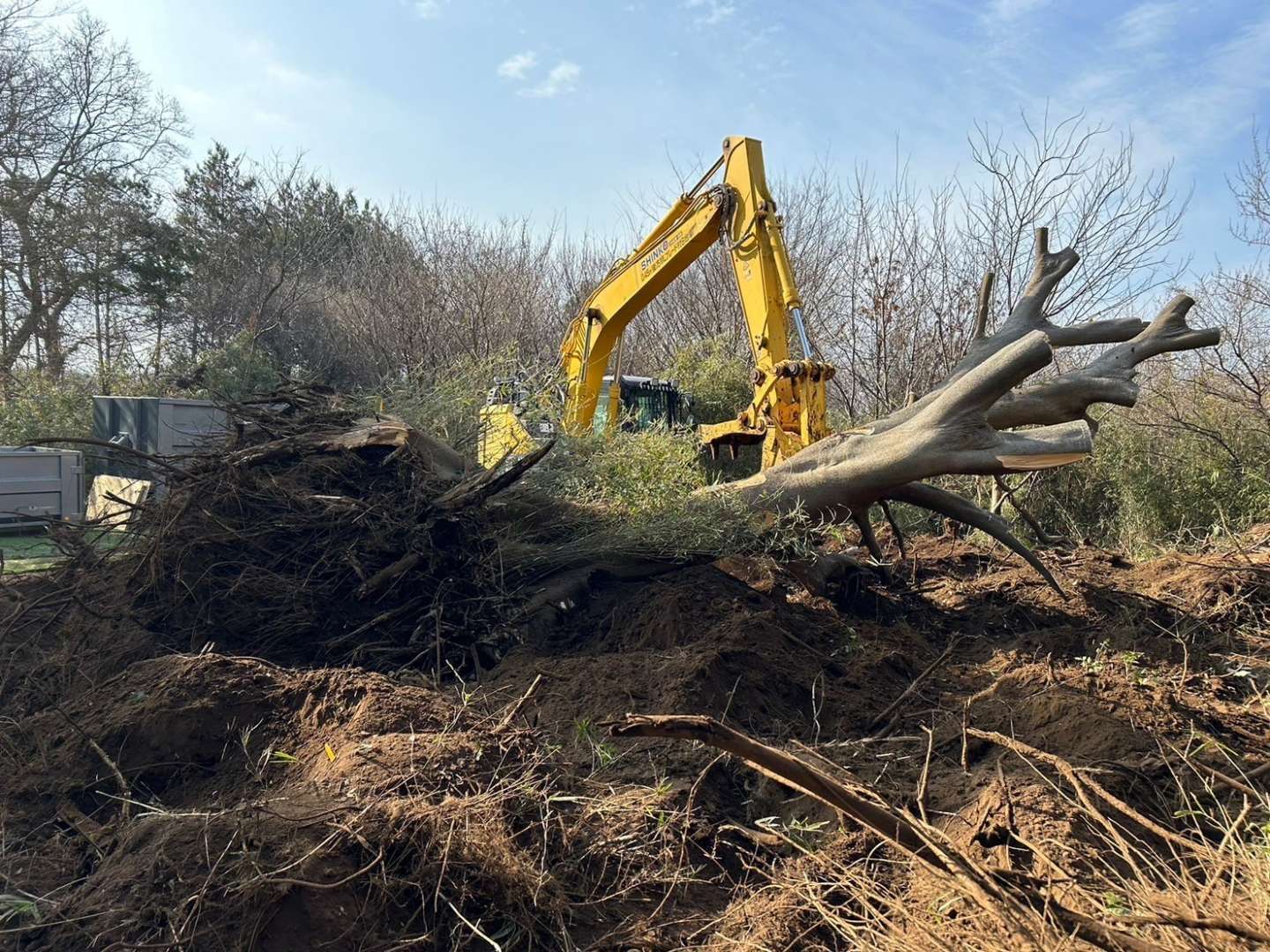 大樹の根っこから抜いて荒整地をいたしました。